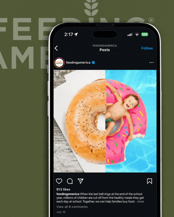 Feeding America wanted us to get the word out about the importance of food insecurity especially among children. And while hunger remains a year-round issue in the US, there are certain times of year it becomes worse. We were tasked with creating awareness around these particular times. As a non-profit organization, Feeding America had limited time and resources, but we were both excited and honored to get this important message to as many as possible.